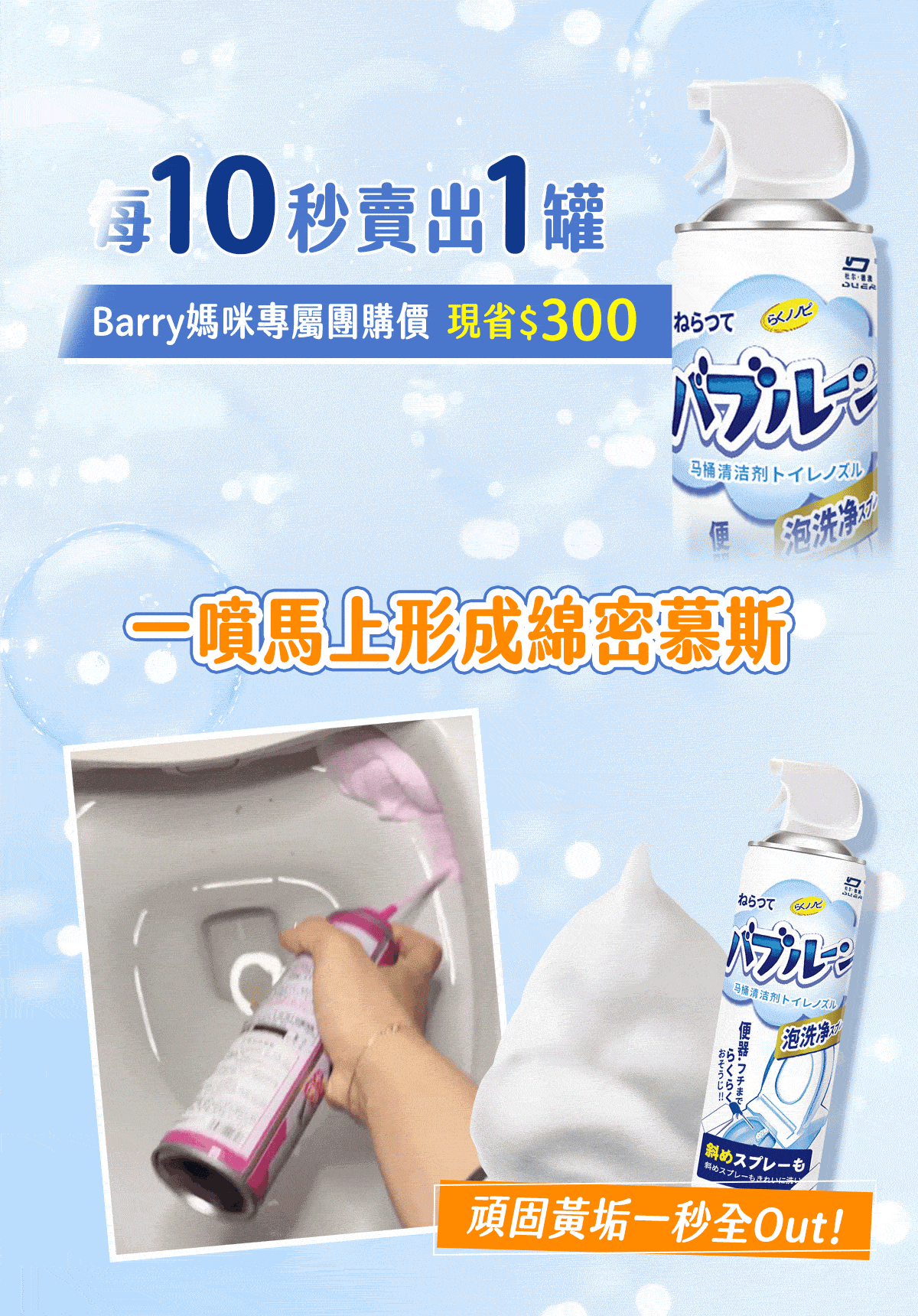 11分鐘前雪泡淨浴廁清潔慕斯 ,馬桶不刷也能亮 , 浴室清潔一瓶搞定 - 【買三送二】【MokoClean雪泡淨】5入組,細緻泡沫滲透每個角落 免運 NT$990