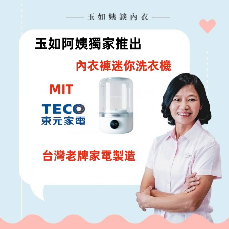 12分鐘前玉如阿姨獨家推出TECO迷你洗衣機,一鍵啟動解放雙手含銀離子持久抑菌,小巧機身功能齊全整機防水防潮防濕 - 內衣內褲分開洗 限時特惠 二入組NT$1990
